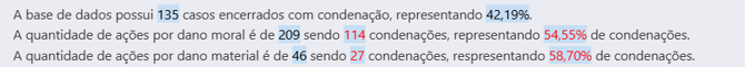 A parte inferior do dashboard relacionadas a dano moral, dano material e condenações refere-se a dados quantitativos de ações por pedido.