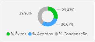 Trata-se da performance somente de casos com tipo status Êxito, Acordo ou Condenação, não são computados casos sem resultado.