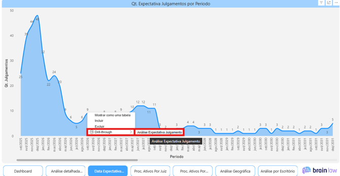 Para análise detalhada dos processos do mês, clique com o botão direito sobre o valor depois em "Drill-through" e em "Análise Expectativa Julgamento":
