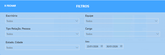 As telas refletem as esquipes e escritórios que o usuário possui acesso, conforme cadastro no Brainlaw.