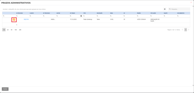 Abrirá o grid com os casos disponíveis para tratamento. Clique no ícone de lápis