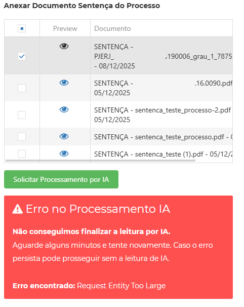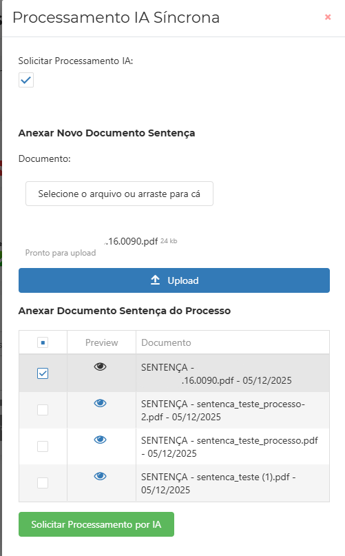 - Clique em "Solicitar Processamento por IA" e aguarde o processamento