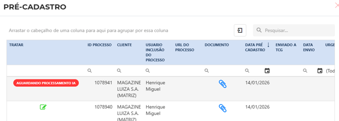 - ⚠️ Nesse status não é possível tratar ou editar o pré-cadastro.