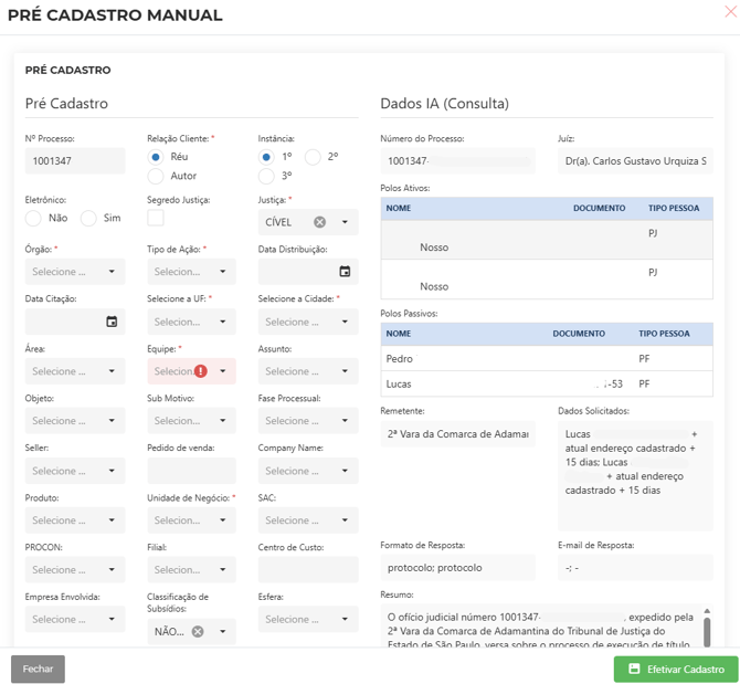 - Os dados capturados pela IA ficam disponíveis na lateral direita, na coluna "DADOS IA (Consulta)".