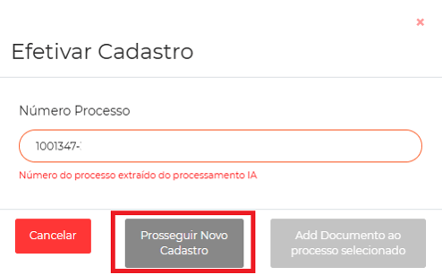 - Ao clicar em "Prosseguir Novo Cadastro", abrirá a janela com os dados extraídos.