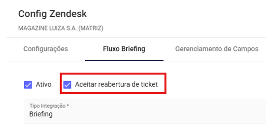 O ticket será automaticamente reaberto no Zendesk e o status do briefing mudará para REABERTO.