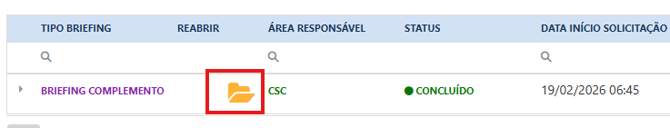 - Quando reaberto o ticket, o status do briefing ficará como "REABERTO".