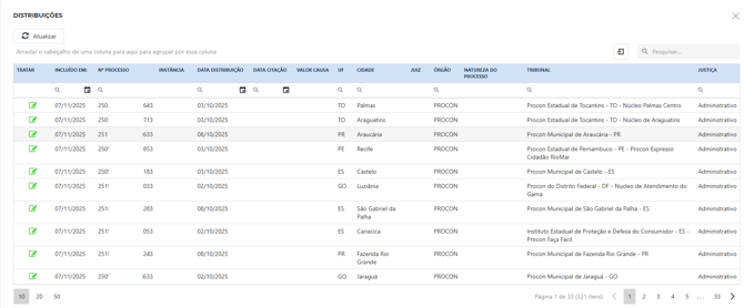 Os casos serão capturados e disponibilizados para tratativa conforme forem disponibilizados nas plataformas de cada Procon configurado.
