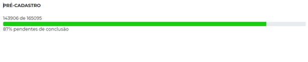 Mostra a quantidade total de pré-cadastros e quantos já foram concluídos.