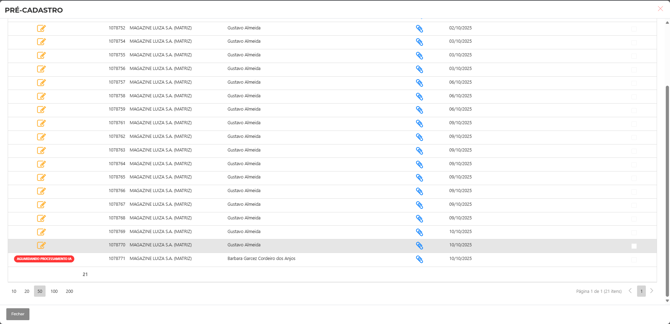 - O cadastro ficará com status "Aguardando cadastro automático" por até 5 minutos enquanto é processado. Após, o status é atualizado para "Aguardando Processamento IA".